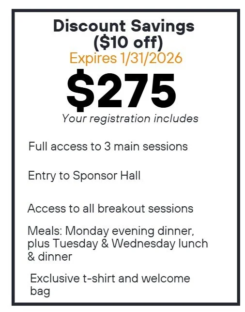 GROUP DISCOUNT - When you register 3 or more at a regular individual rate, each additional registrant receives a $50 discount!